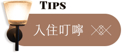 | ✦ | 為維護住宿安寧,晚間22:00過後請降低音量,勿大聲喧嘩,訪客最晚可待至22:00避免影響其他旅客權益。 |